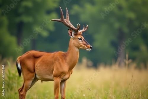 © Pornchai, Naklejka premium Side profile portrait of a male Barasingha in Kanha's forest , Kanha, wildlife, swamp deer