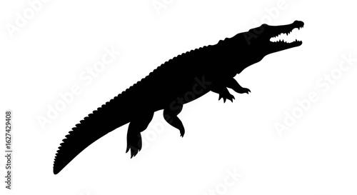 © Hammam, Obraz premium side profile silhouette of a leaping crocodile, isolated on transparent background: powerful vector illustration for design projects