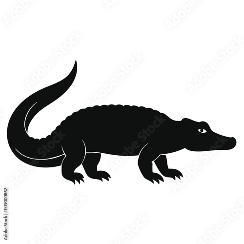 © KOHINUR, Fototapeta premium Side profile solid black silhouette of a crocodile vector design