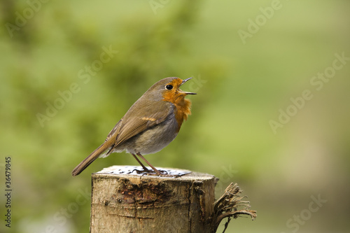 Fototapeta premium Side shot of a singing robin