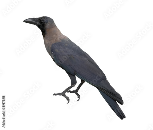 © Nudphon, Obraz premium Side view crow, Corvus corone, isolated on white background.