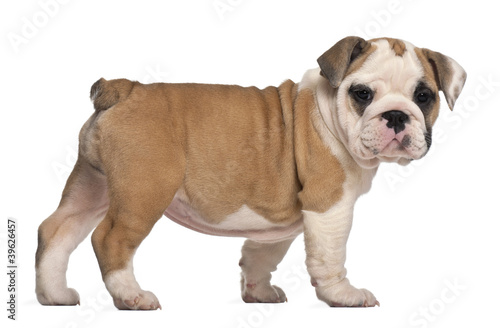 © Eric Isselée, Obraz premium side view, English Bulldog puppy, standing, 2 months old