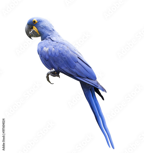 Naklejka premium side view full body of hyacin macaw bird isolated white background