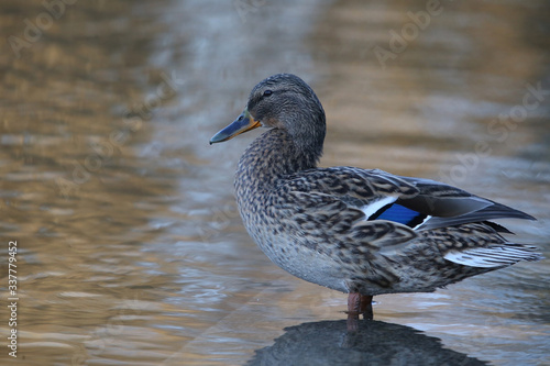 Fototapeta premium Side view Mallard Ducks Anas platyrhynchos relaxing in pond