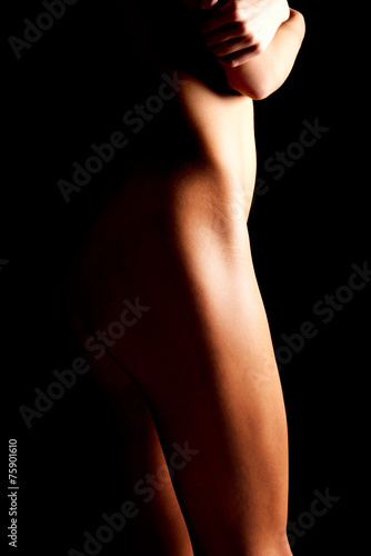 © Piotr Marcinski, Naklejka premium Side view naked female body on a dark background
