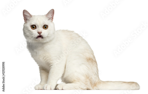 © Eric Isselée, Obraz premium side view of a British Shorthair sitting isolated on white
