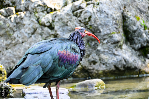 Naklejka premium Side view of a geronticus eremita or waldrapp big exotic bird