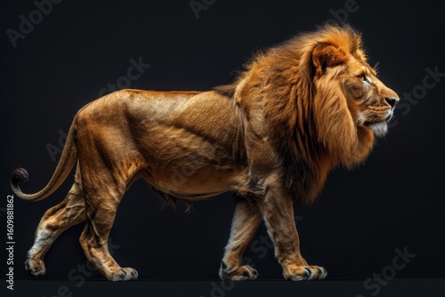 © Hamza, Obraz premium Side view of a Lion walking, looking at the camera,