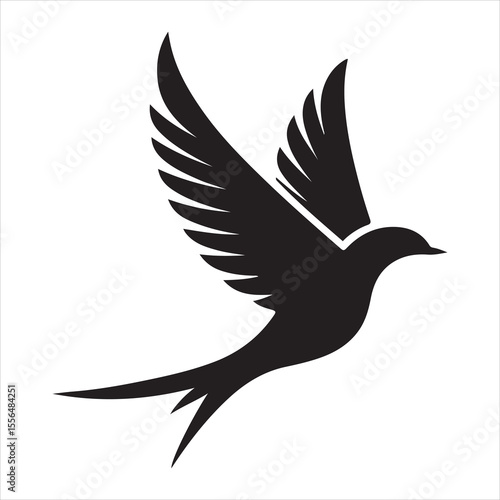 © Fuzael, Obraz premium Side view of a perched bird vector silhouette on a branch, black colour vactor