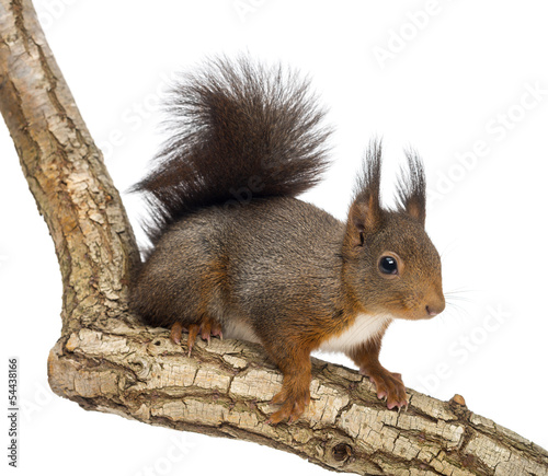 Obraz premium Side view of a Red squirrel, Sciurus vulgaris, standing