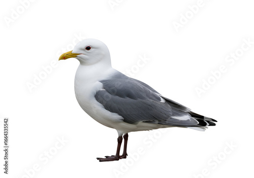 © Pain, Obraz premium Side view of a seagull, displaying its gray and white plumage against a black backdrop.