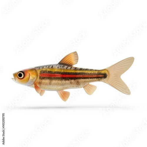 © NikahGeh, Fototapeta premium Side view of a small, striped freshwater fish.