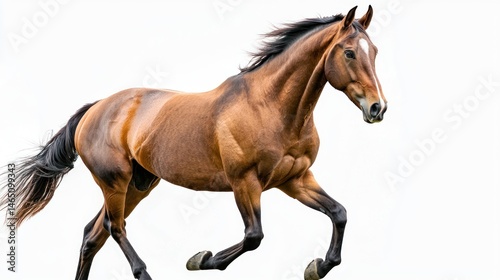 © Creations Photo , Obraz premium Side view of a sturdy brown horse trotting, white background
