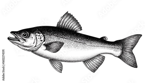 © Sungging, Obraz premium Side view of a stylized fish drawing
