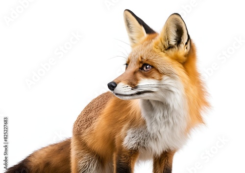 © Hai, Fototapeta premium Side view of a two-year-old Red fox looking up, isolated on white.