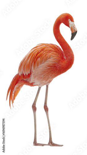 Obraz premium Side view of a vibrant pink flamingo. Detailed plumage, long neck, and long...