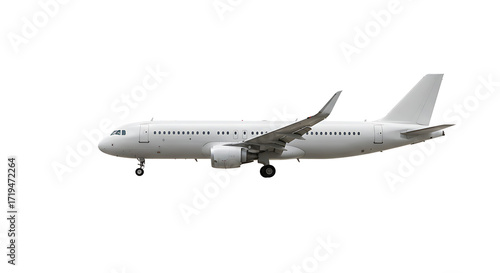 Obraz premium Side view of a white passenger jet aircraft on a white background.
