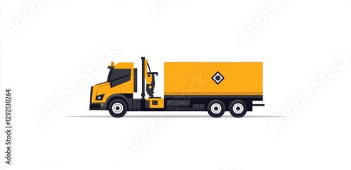Fototapeta premium Side view of a yellow dump truck with excavator crane