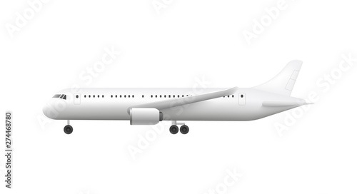 © sabelskaya, Fototapeta premium Side view of aircraft or white blank plane 3d vector illustration mockup isolated.
