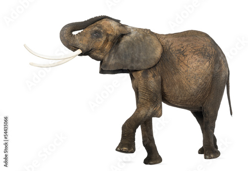 © Eric Isselée, Obraz premium Side view of an African elephant lifting its trunk and leg