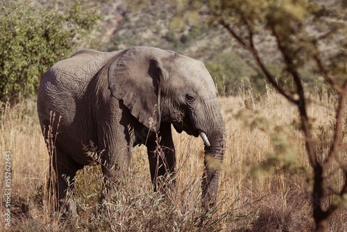 © vectorfusionart, Naklejka premium Side view of an elephant in the savanna