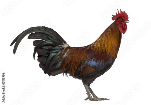© Eric Isselée, Fototapeta premium Side view of Ardennaise rooster isolated on white