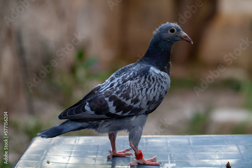 Obraz premium Side view of baby racing pigeon with a blurry background.