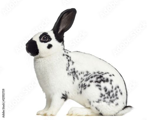 © Eric Isselée, Obraz premium Side view of Checkered rabbit isolated on white