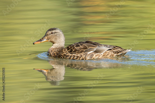 © Gregory Johnston, Fototapeta premium Side view of female mallard swimming in the pond.