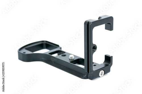 © phanasitti, Obraz premium Side view of L Plate for camera isolated on white background. Black Camera L-Plate isolated
