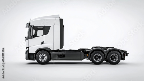 © RicardoLuiz, Fototapeta premium Side View of Modern White Semi Truck on a White Minimalistic Background