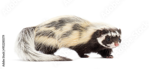Obraz premium Side view of Saharan striped polecat, Ictonyx libycus, isolated on white