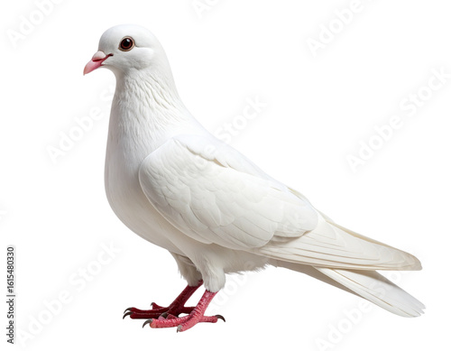 © MdIbrahimIslam, Naklejka premium Side View of Standing White Dove with Shadow Detail, Transparent PNG Cutout