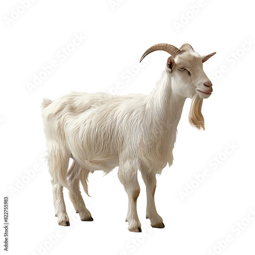© Digital StudioX, Obraz premium Side view of white goat with horns isolated on transparent background.