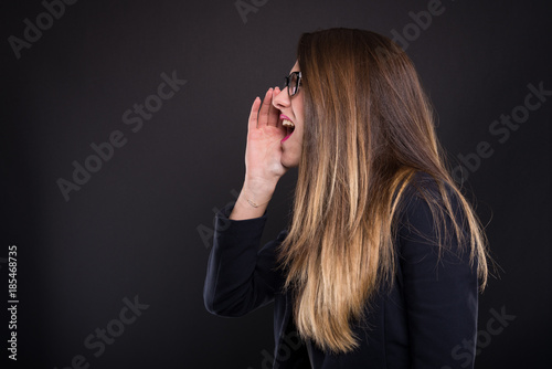 Obraz premium Side view of young ceo woman with glasses