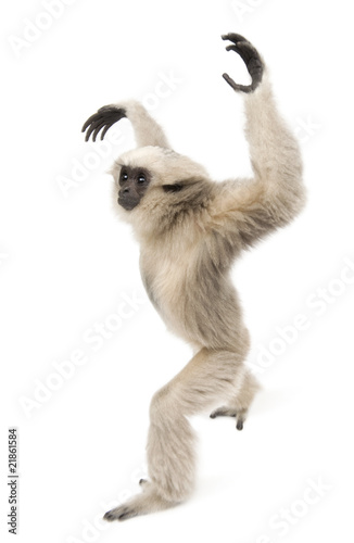 © Eric Isselée, Naklejka premium Side view of Young Pileated Gibbon, 1 year old, walking
