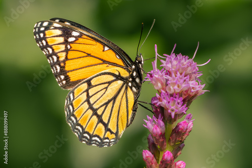 © Luc Pouliot, Obraz premium Side view on a viceroy butterfly on a liatris flower with blurred green background