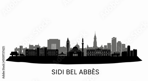 © godsfavoritearts, Fototapeta premium Sidi Bel Abbs silhouette with Algeria Skyline.