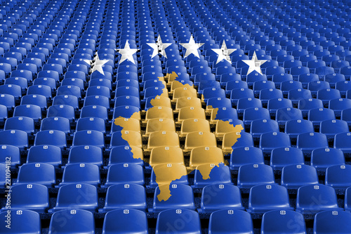Fototapeta premium Siedziska stadionowe z flagą Kosowa. Koncepcja konkurencji sportowych.