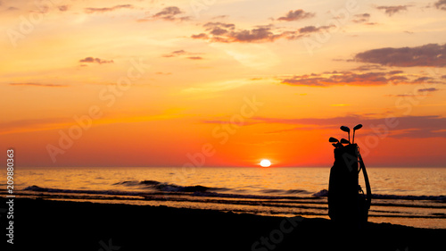 © anetlanda, Obraz premium Sielankowy strzał z zachodu słońca i klubów golfowych