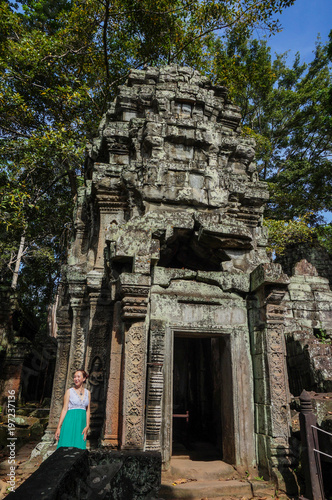 Naklejka premium Siem Reap, Cambodia - August 5th, 2016:Ta Prohm, part of Khmer temple complex, Asia. Siem Reap, Cambodia. Ancient Khmer architecture in jungle.ia. Ancient Khmer architecture in jungle.