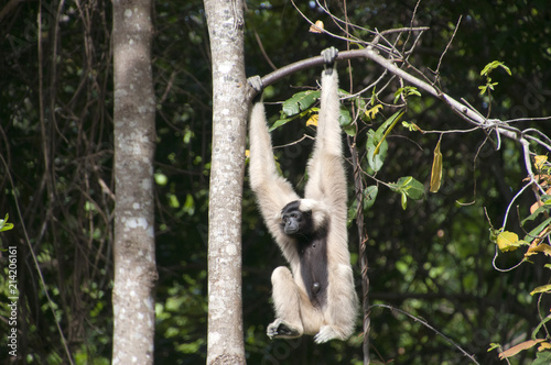 Naklejka premium Siem reap Cambodia, female pileated gibbon swinging on a tree branch