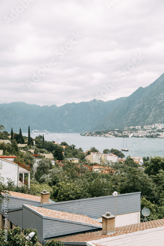 Fototapeta premium Sights of Montenegro and streets. Panorama of the Bay of Kotor and the old town.