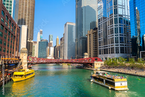 © Sergii Figurnyi, Obraz premium Sightseeing cruise at Chicago river