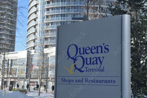 © eugen, Fototapeta premium sign at Queen's Quay Terminal (Harbourfront Centre) located at 207 Queens Quay W, Toronto