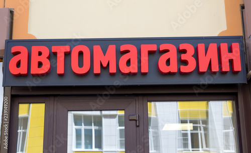© VPales, Obraz premium Sign "Autoshop" on the facade of the building