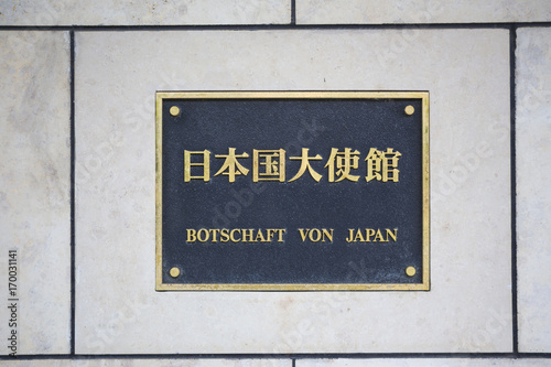 © Tobias Arhelger, Fototapeta premium sign of the Embassy of Japan in berlin germany