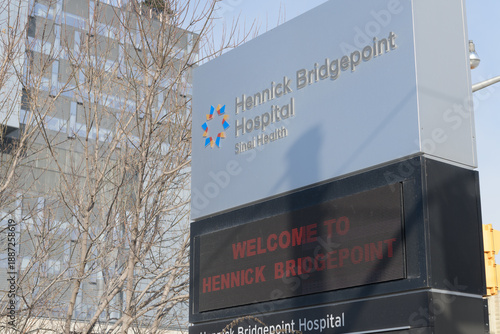 © eugen, Fototapeta premium sign outside Hennick Bridgepoint Hospital at 1 Bridgepoint Dr off Gerrard St E, Toronto