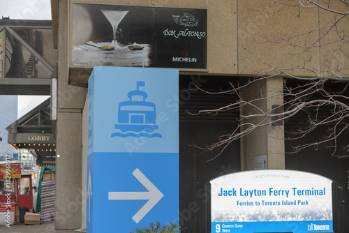 © eugen, Fototapeta premium sign with directions to Jack Layton Ferry Terminal, 11 Queens Quay W, Toronto