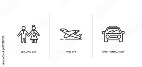 Fototapeta premium signals set outline icons set. thin line icons sheet included girl and boy, take off, car frontal view vector.